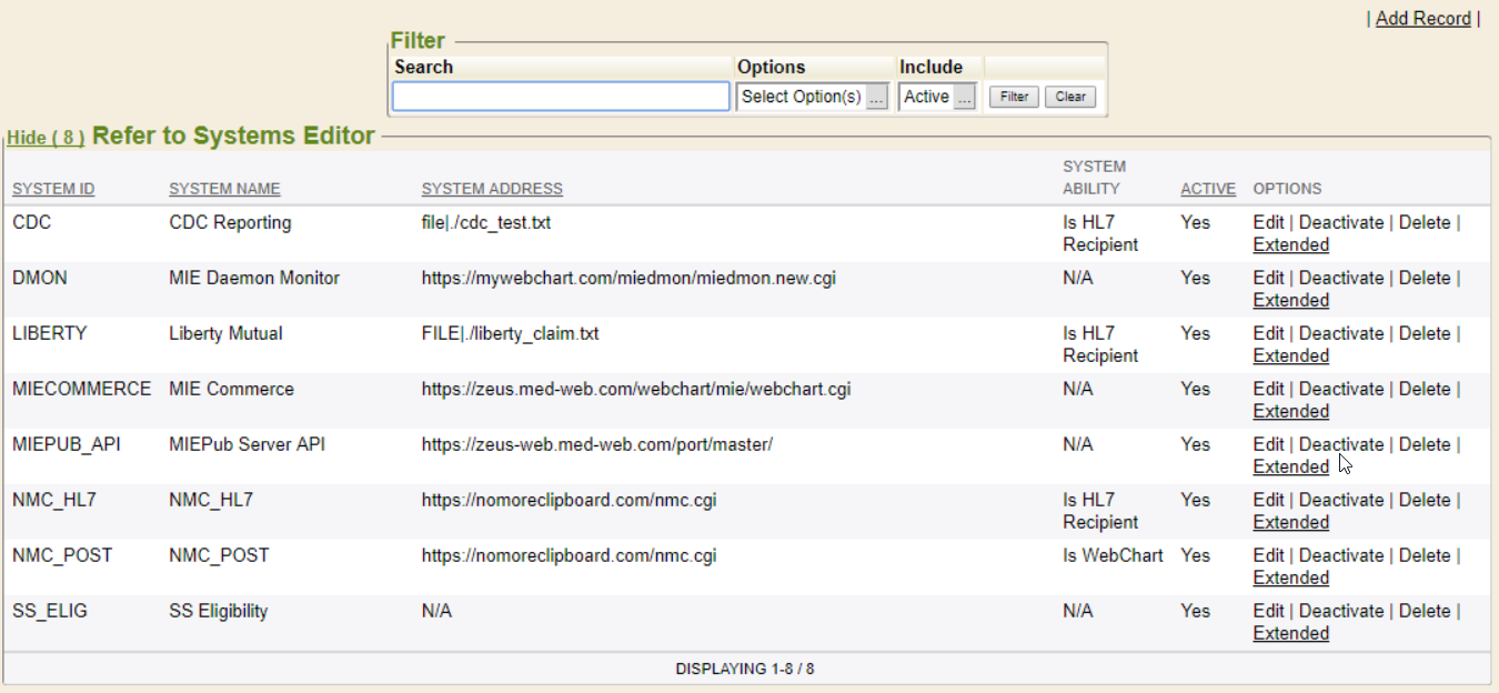 Refer To Systems (RTS) is used to manage connection details for vendors/services that receive data from Enterprise Health. The